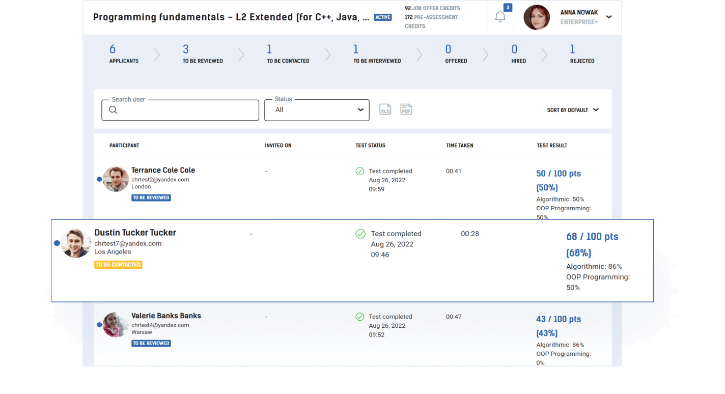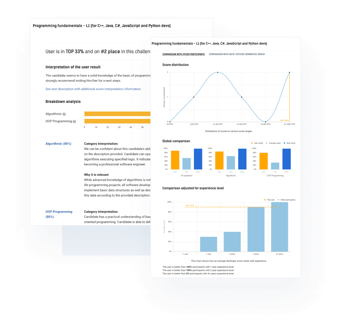 候補者のスキル分析が可能な、詳細なテストレポートを提供します