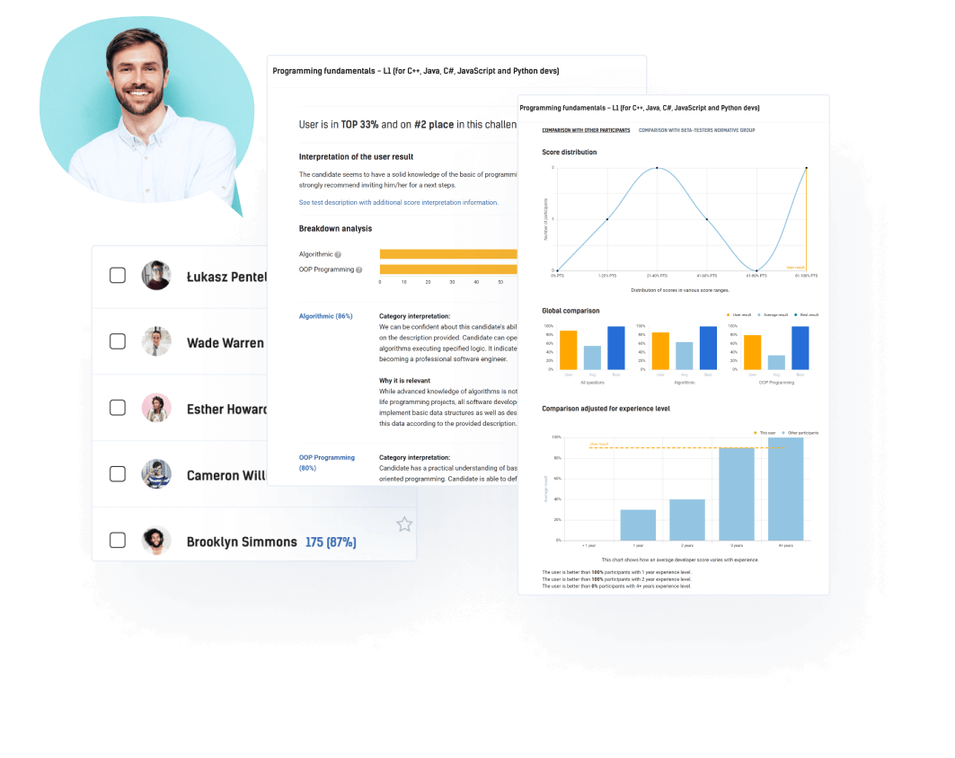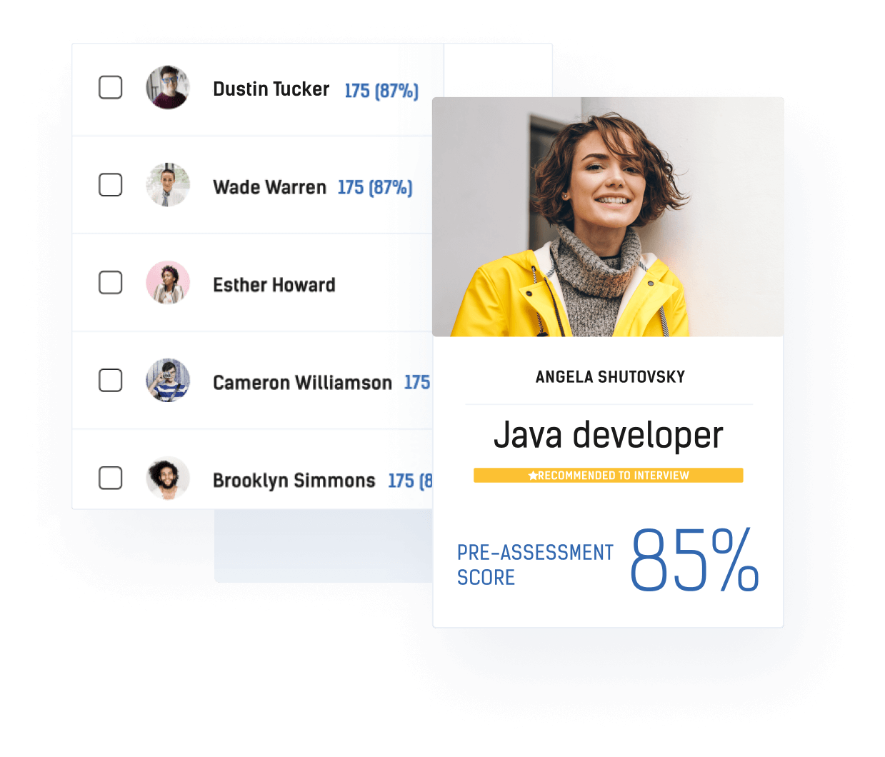 候補者のスコアの解釈を提供しますので、より自信を持って決定を下すことができます。