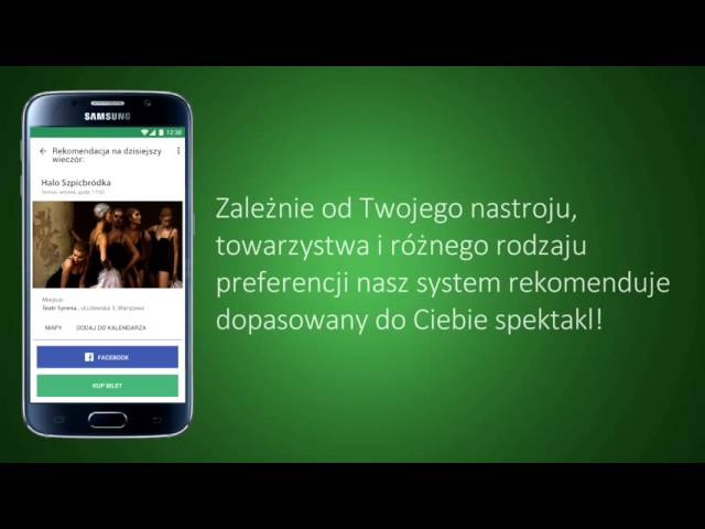 Metody oparte o Collaborative Filtering używają bazy preferencji użytkownika dotyczących poprzednich spektakli w celu zaproponowania nowemu użytkownikowi dodatkowych przedstawień teatralnych, które mogą go zainteresować. Z poziomu aplikacji możliwe jest zakupienie biletu lub zaproszenie znajomych.
