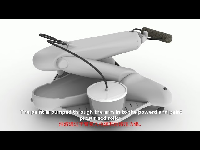 The pump in the mid-section of the paint robot will pump paint in to the roller.