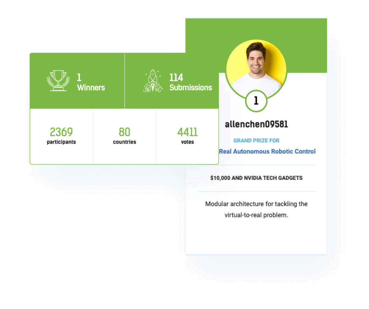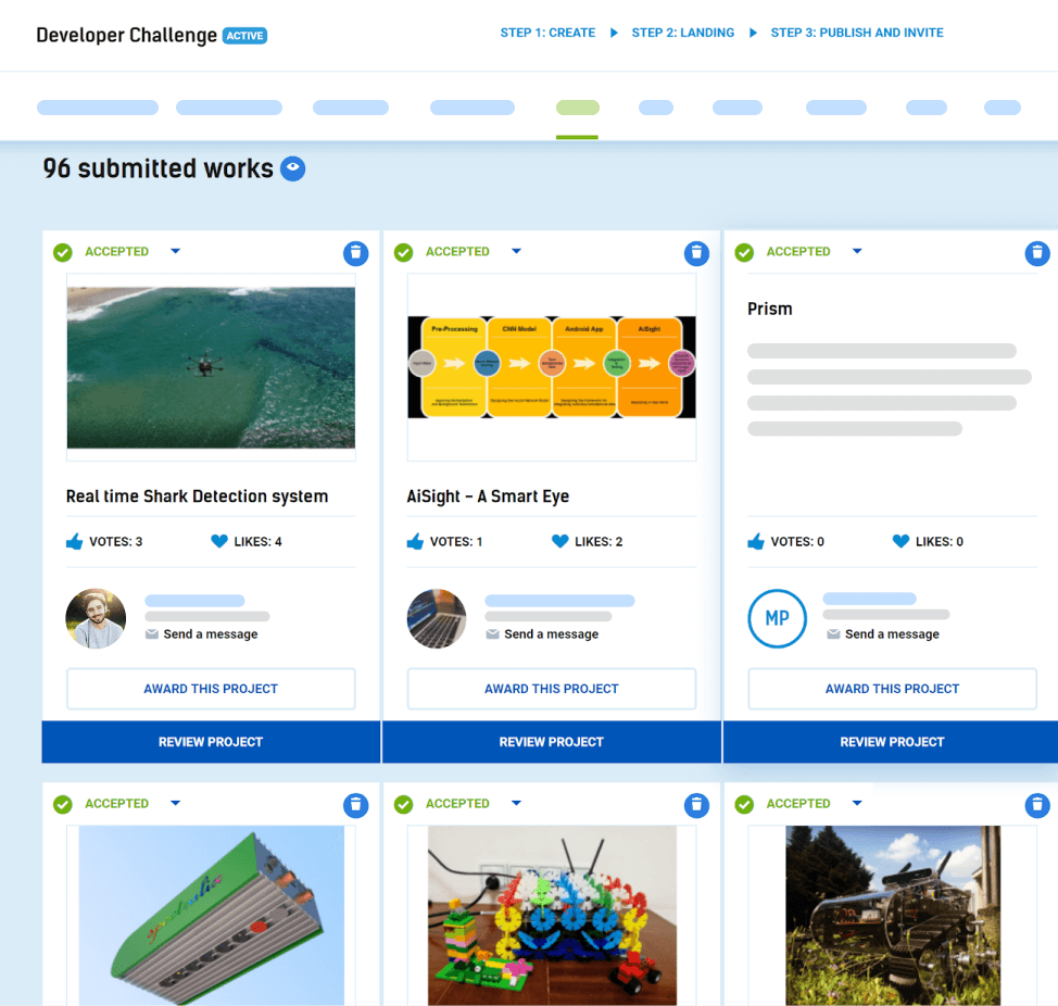In addition to the dedicated judging scores, we also offer the option to run public voting and have a User Choice Award. -